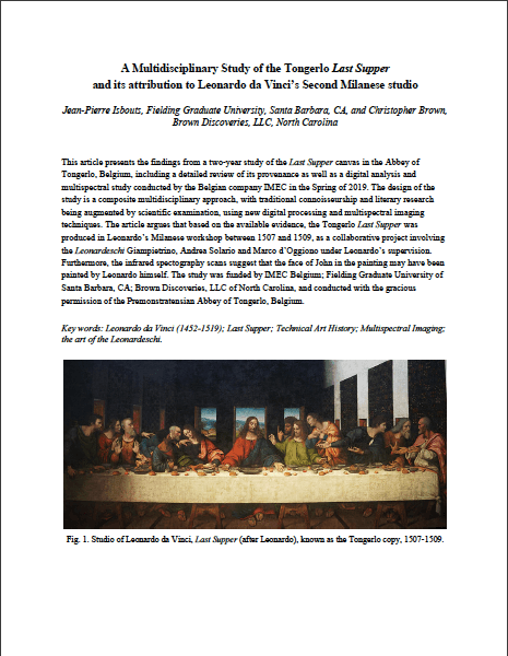Until now, it is generally accepted that the canvas in the Abbey of Tongerlo is a very successful copy of the world-famous fresco by Leonardo Da Vinci from the Santa Maria della Grazie in Milan. Prof. Isbouts and his team believe that Da Vinci himself was closely involved in the realization of the canvas, and perhaps even co-painted the work. They found indications for this after an extensive study of European historical archives from that time. Among other things, it appears that the French king Louis XII, after seeing the fresco in Milan, ordered it to be transferred to France - which of course was not possible. And that Da Vinci was experimenting with painting on canvas in the same period, something no artist had ever seen before, and the big advantage was that large paintings could easily be rolled up and transported. Da Vinci copied his own works on canvas, with the help of his students. There is also evidence in the archives that a large canvas of the Last Supper was indeed shipped to the French court. And that a canvas of the Last Supper was later sold to the abbot of a monastery in Belgium.