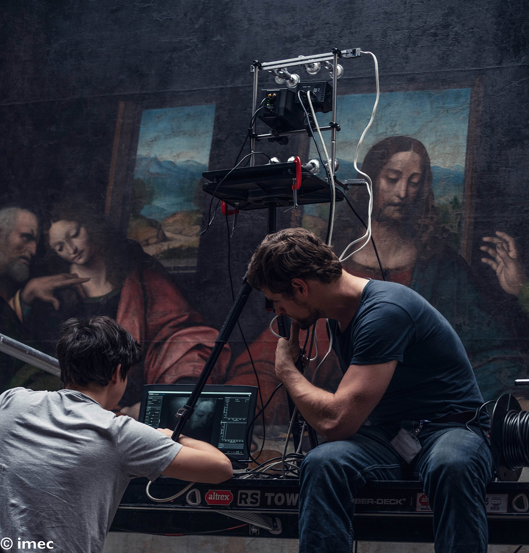 With imec's hyperspectral scans, the team of Prof Isbouts has very detailed information about the composition of the painting. And this without making physical contact with the canvas, and therefore without damaging it. Based on the hyperspectral images in the visible and infrared spectrum, differences can be traced between original and later applied layers of paint, for example from earlier restorations. In addition, pigmentation can be compared to paints of the same age. Prof. Isbouts' team also wants to look for signatures - pentimenti - that can be hidden underneath the painted figures. These signatures contain information about how the painting was realized. Also, the structure of the brush smears or other artifacts or damage can be investigated