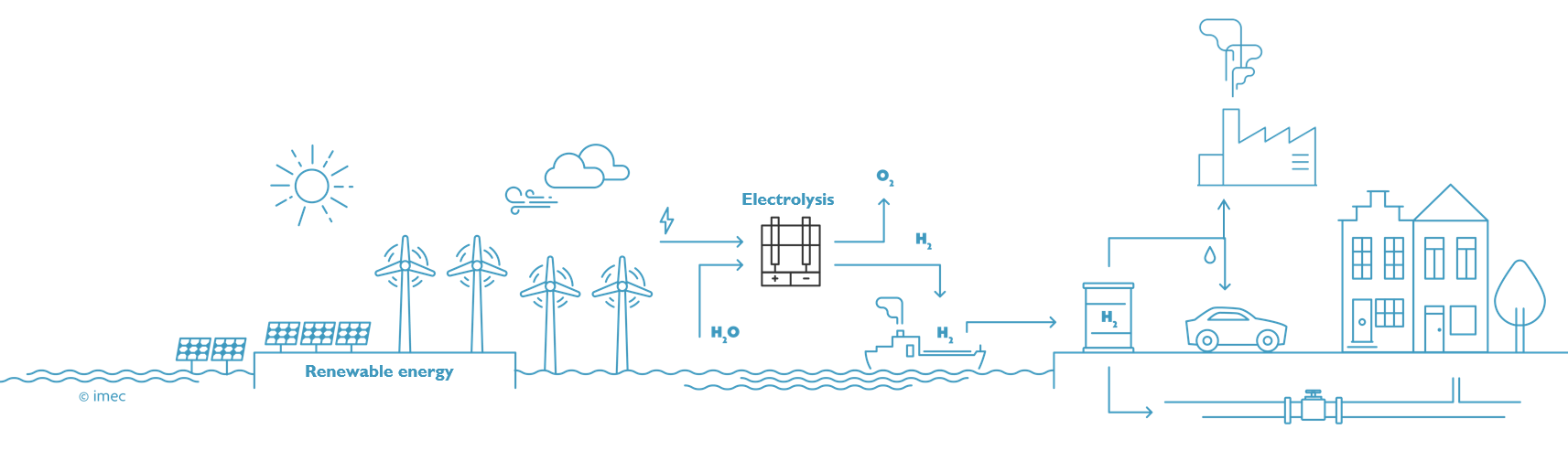 To limit global warming, we need both a drastic reduction of carbon emissions and a way to extract and re-use carbon dioxide from the air. Why not tackle both challenges together? The idea behind ‘Power-to-Molecules’ is to decarbonize industries by producing renewable hydrogen in the first stage and converting carbon dioxide to renewable fuels or chemical building blocks in the next stage. To get this done, imec/EnergyVille is working on solutions to make large-scale green hydrogen a reality and to generate hydrocarbons from recycled carbon dioxide.