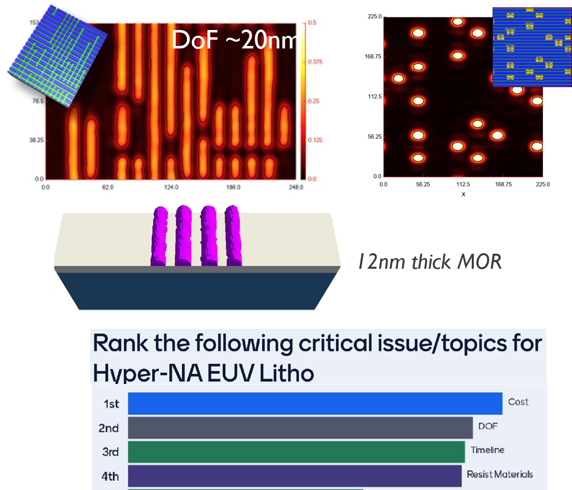 To continue scaling semiconductor devices, we need to be able to print ever smaller structures. Currently, this can be achieved with high NA EUV lithography. In the future, the next logical step is to increase the NA further to so called hyper NA systems. This comes with some challenges however: depth of focus will shrink which will require thinner photoresist. Also, intrinsic resist granularity will become more important at smaller dimensions. The first goal of the thesis is therefore to model photoresist to find what is needed for hyper NA. The second part is to understand the usefulness of hyper NA. This requires identifying patterning cliffs for various designs that could be enabled by a higher NA as well as mask/imaging solutions to push this limit further.