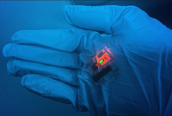Optical energy upconverters offer opportunities to increase the efficiency of solar cells and improve sub-surface, near-infrared medical imaging. Several material and device classes have been developed to transform near-infrared (NIR) into visible light. Nevertheless, all upconverter approaches to date fail to combine a high up-conversion efficiency at moderate to low light intensities with easily and safely processable, abundantly available materials. The goal of this Ph.D. project is to close this gap, by making use of a novel organic, stacked diode-based device architecture able to achieve upconversion without the need for an external power supply (see picture demonstrating a bias-less red-to-green upconversion device). The wavelength range of this device will be extended deeper into the NIR by using recently developed state-of-the-art organic semiconductors with higher absorption and emission efficiencies. This project further relies on the implementation of optical simulations to maximize the in- and outcoupling of the absorbed and emitted photons and to take photon recycling within the device into account. The liberation from the need of an external voltage results in strongly reduced dark current and shot noise, making these upconversion devices particularly suitable for NIR imaging, which will be demonstrated by the fabrication and optimization of a bio-compatible upconversion foil for NIR in vivo imaging under low-light conditions. The Ph.D. project will be conducted as part of an interdisciplinary and multicultural team of highly skilled scientists who work toward next-generation, sustainable and ultraflexible optoelectronic devices based on alternative (organic) semiconductors. The research will be performed at the imo-imomec Physics/Engineering building located on the campus of Hasselt University in Diepenbeek (Belgium). These facilities contain state-of-the-art laboratories and equipment for both the material and device aspects of this Ph.D. project.