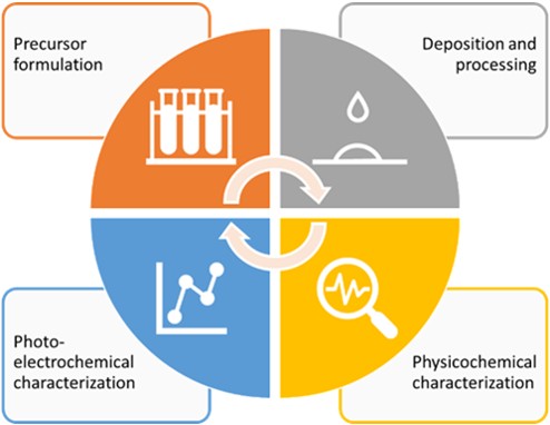 In this project, we aim to develop high-performance mixed-anion oxychalcogenide semiconductors specifically engineered for selective photoelectrochemical CO2 reduction. The synthesis of mixed-anion photo-absorbers will be achieved via either a one-step or a two-step solution-based approach. In the two-step method, existing solution-gel precursor formulations will first be used to deposit uniform metal oxide coatings onto substrates. These oxide layers will then undergo post-deposition annealing in a chalcogen-containing atmosphere, leading to partial sulfurization or selenization, thereby forming the targeted mixed-anion oxychalcogenide phase. In the one-step method, the solution-gel precursor formulation will be modified to include both metal and chalcogenide sources from the start. This aims to enable direct synthesis of oxychalcogenide coatings in a single deposition and heat-treatment step. The precursor solutions, intermediates, and final coatings will undergo a thorough set of physicochemical and (photo)electrochemical characterization techniques. This approach will enable us to generate both fundamental and applied knowledge about the relationship between synthesis parameters, physicochemical characteristics, and the (photo)electrochemical performance of the materials. Finally, the most effective oxychalcogenide photoabsorber will be selected and integrated into a photoelectrode stack by combining it with suitable electron- or hole-transfer layers and appropriate co-catalysts for selective CO2 reduction.
